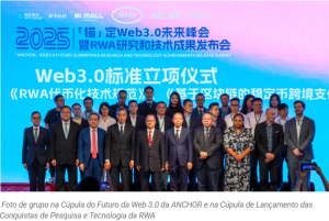 Foto de grupo na Cúpula do Futuro da Web 3.0 da ANCHOR e na Cúpula de Lançamento das Conquistas de Pesquisa e Tecnologia da RWA